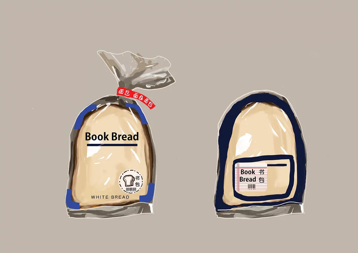 面包mianBAO Bread <+> bag 书包shuBAO Book